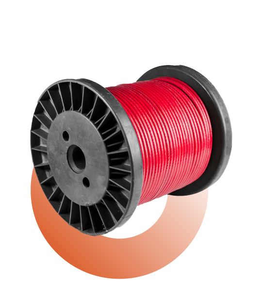 Construcción 7x19 de 1/8" a 3/16" forrado con PVC negro, rojo y gris, el cable es flexible y le permite tener mejor movimiento entre las poleas de tu equipo.